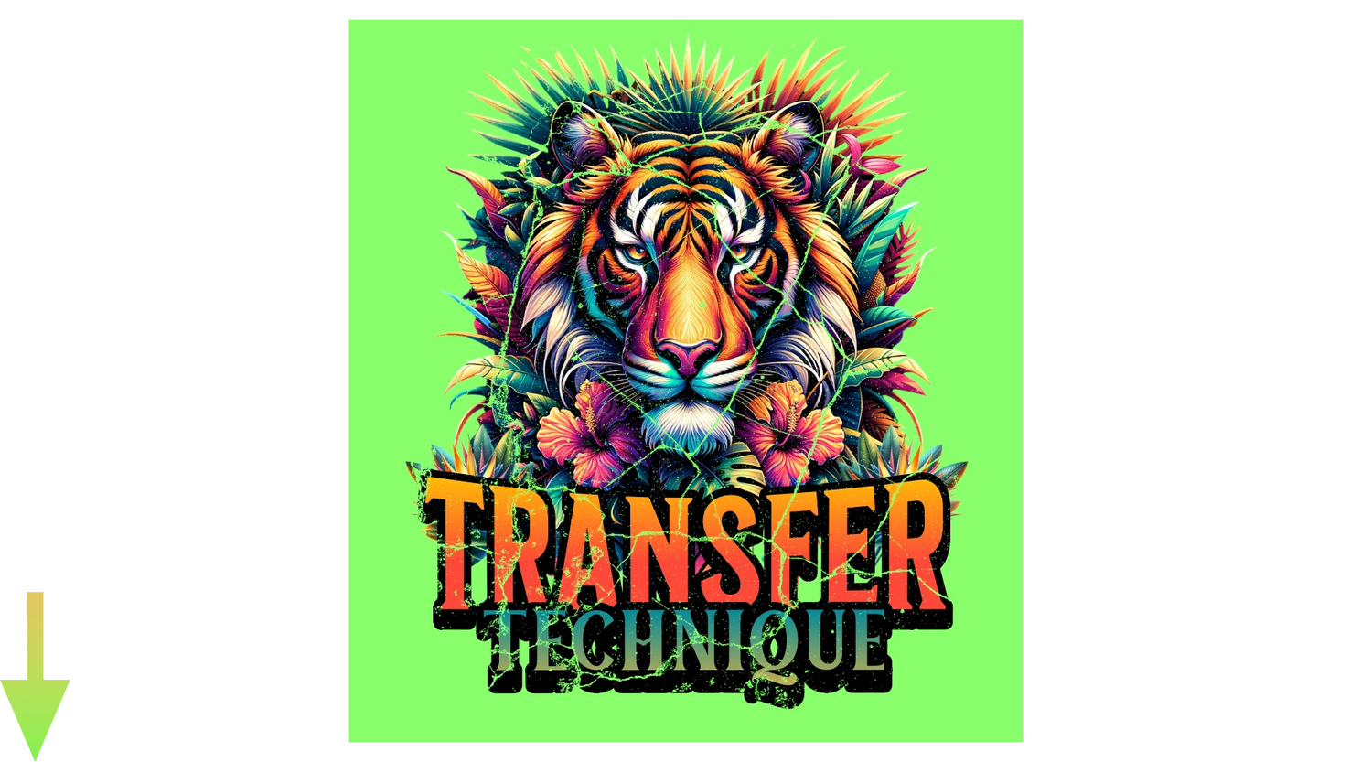Note: the green background square represents the color of the shirt, which in this case will be black. The bright green is used solely for visibility, allowing you to see the design adjustments more clearly. These charts illustrate the progression of techniques used in DTF production to get more professional results. The final outcome will closely match the original design while using less ink, resulting in a softer and more comfortable feel as you move down the chart.