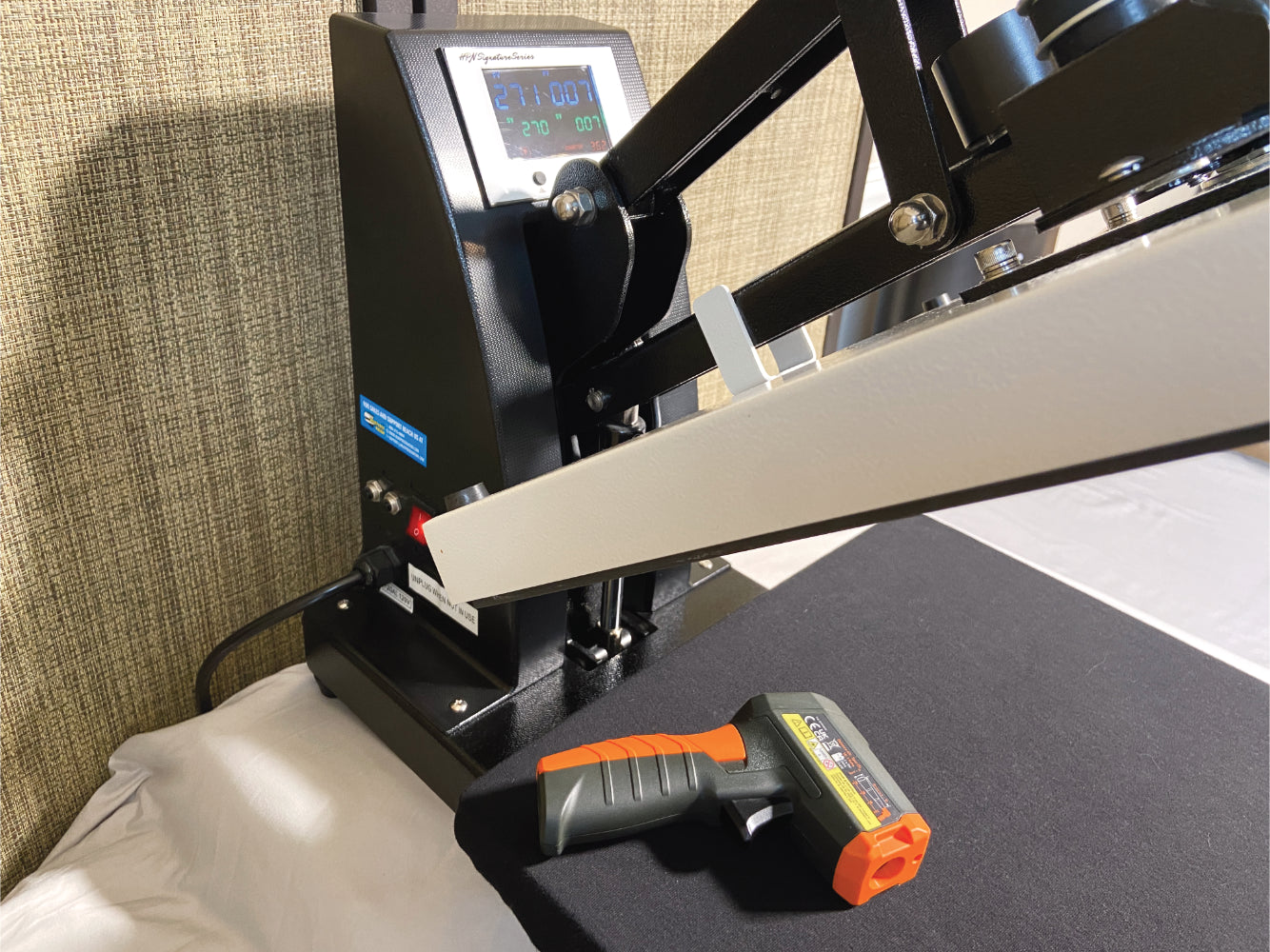 Pro Tip: Every heat press is unique, so you might need to tweak the temperature settings based on your machine’s specific output readings. It’s a great idea to use a temperature testing device, like an infrared heat gun, to check how accurate your heating plate is. Be sure to test all areas of the heat plate to ensure your heat press is delivering even warmth across the whole surface.